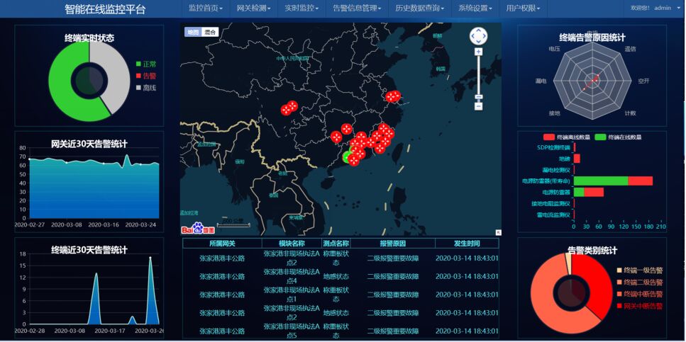 實時監(jiān)測:實現(xiàn)對SPD浪涌保護器、接地電阻、避雷針等監(jiān)測對象遠程在線實時檢測,發(fā)現(xiàn)故障秒級上報,即時完成報警,方便運維人員及時處理;